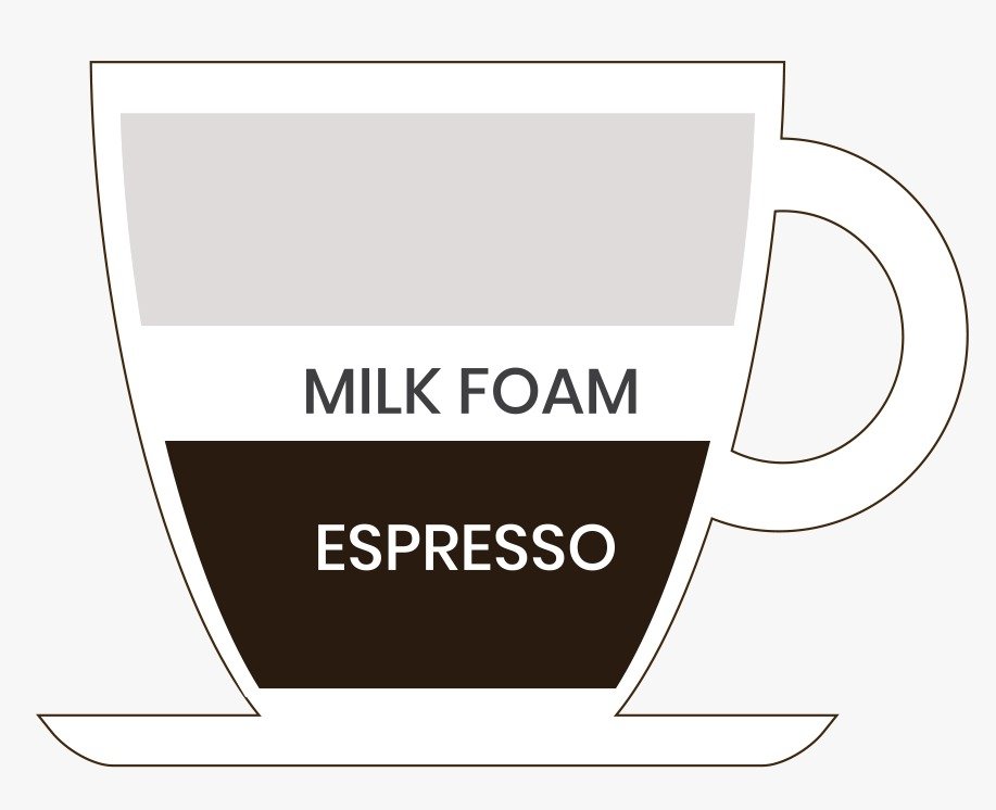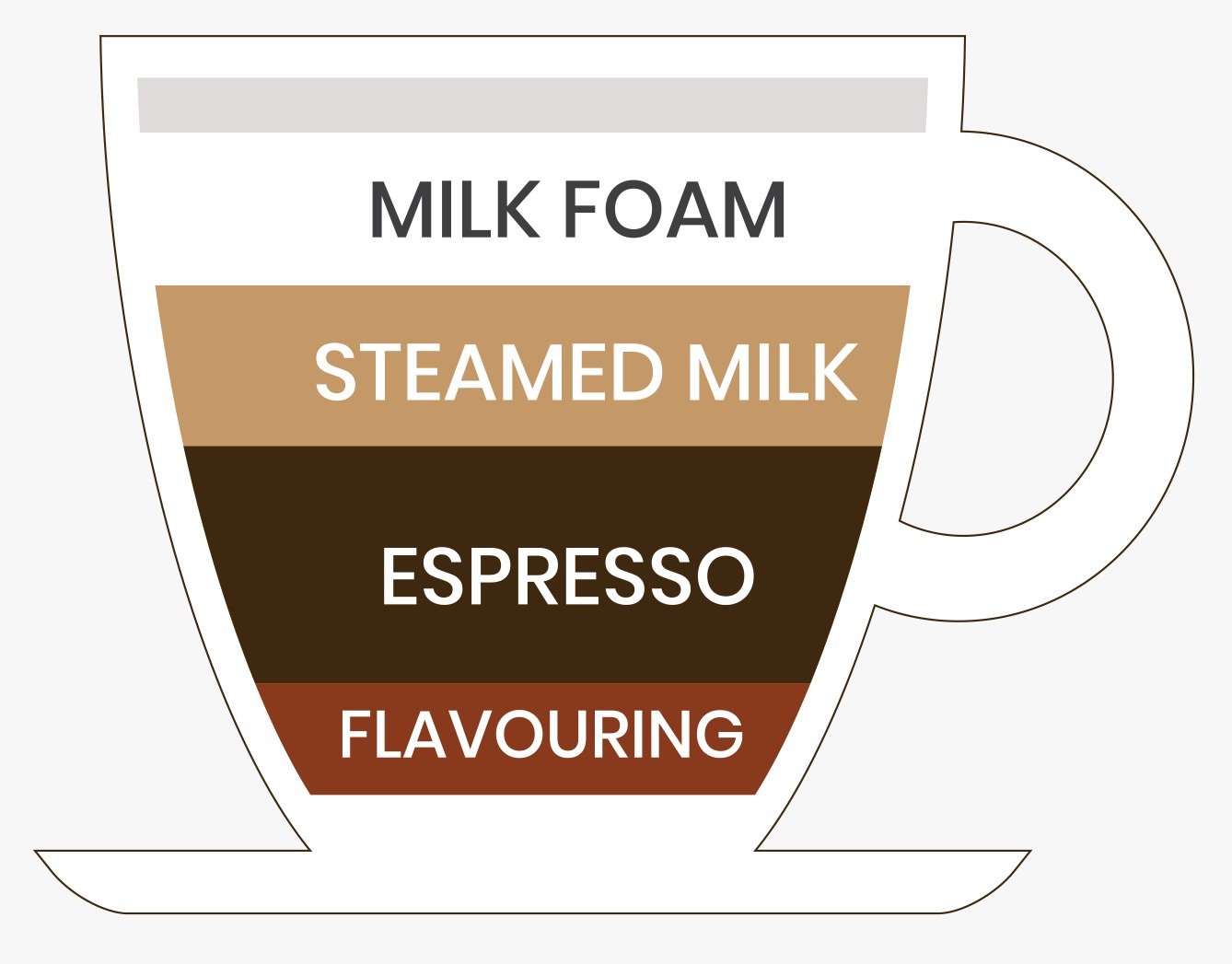 Espresso, hot chocolate, hot milk and topped with milk foam