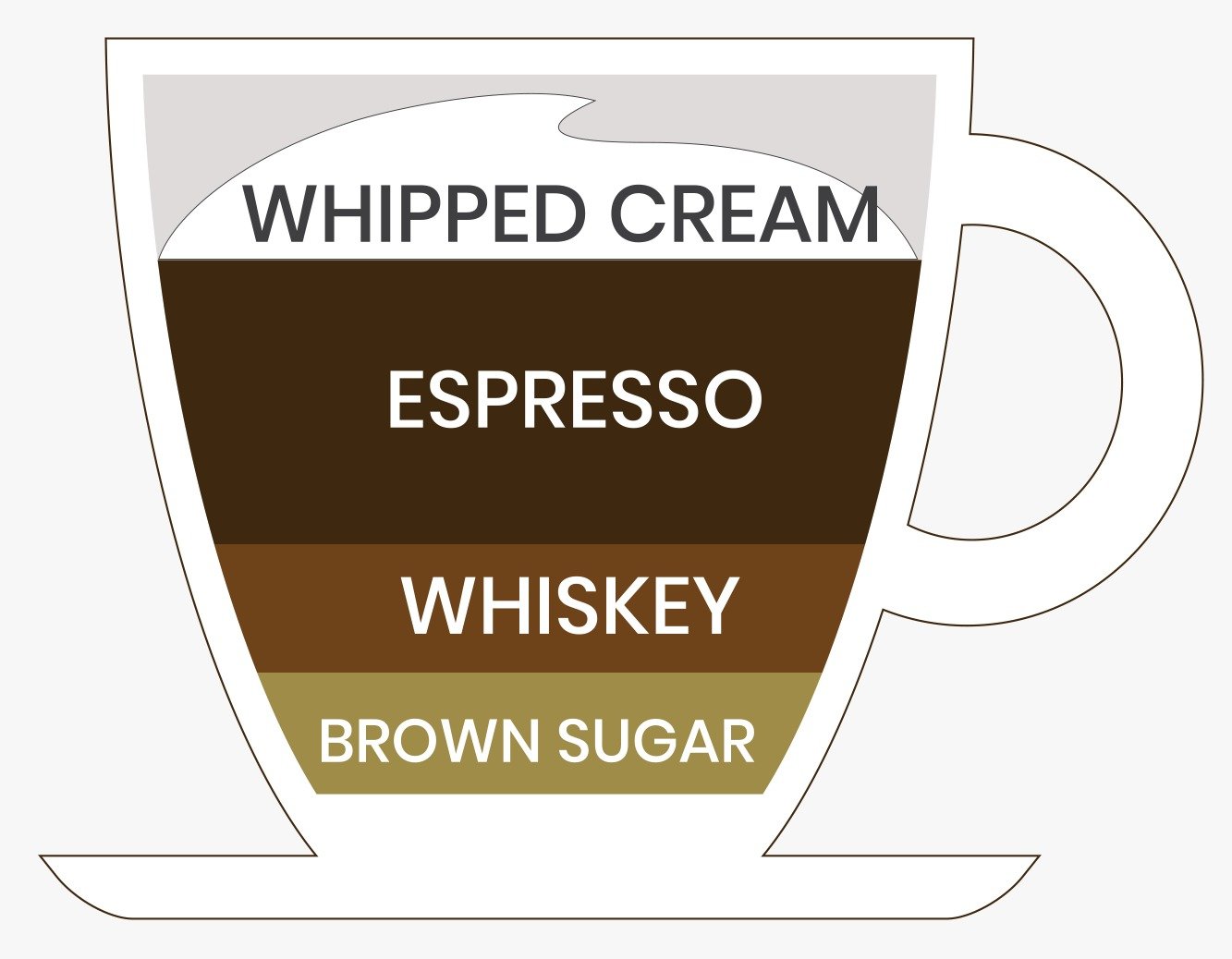 Espresso, brown sugar, whiskey topped and with whipped cream